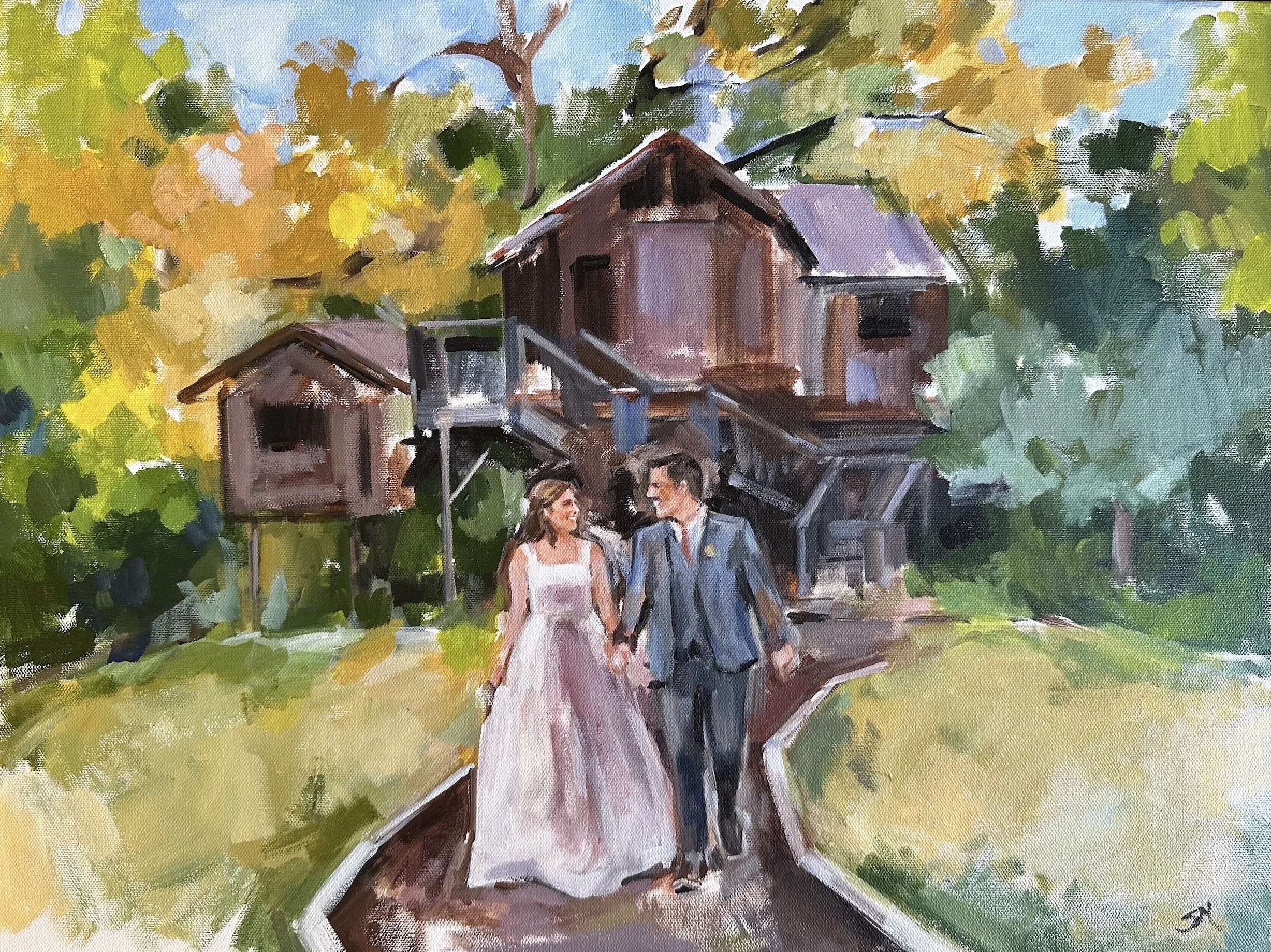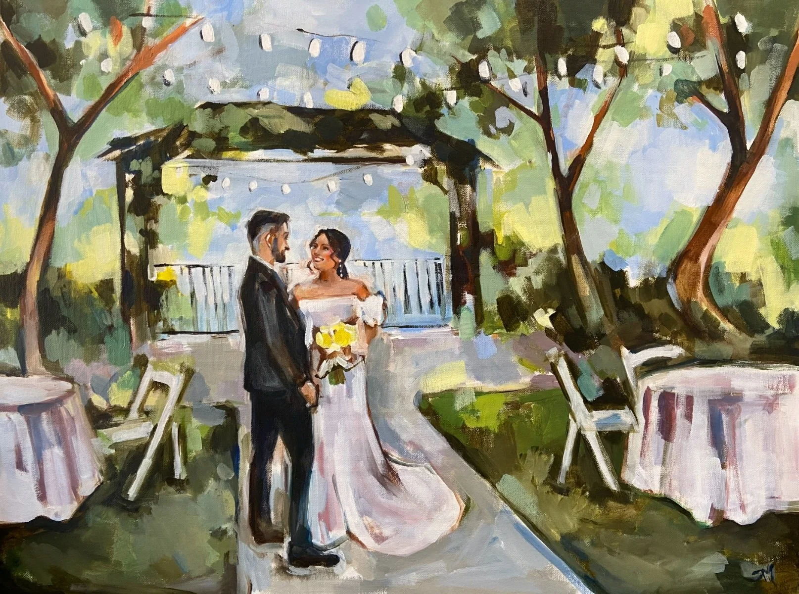 Impressionistic brushstrokes express the joy and love of your day on canvas - preserving not only how it looked, but how it felt. Guests watch as the painting process unfolds- broad strokes taking shape, colors shifting, details emerging- an experience made tangible in a work of art. Something you can return to for years to come.